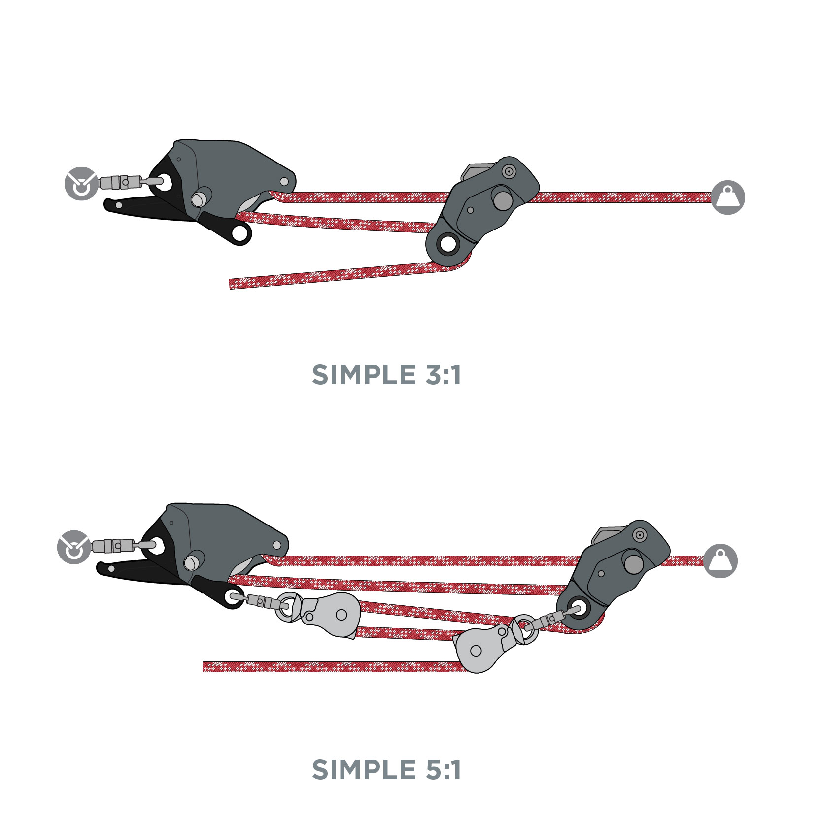 - Travels down rope in vertical systems, resetting and maximizing the haul field.