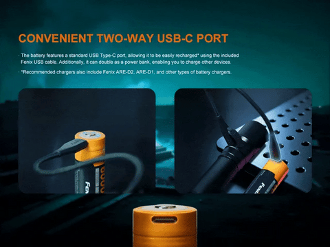 The Fenix ARB-L21-6000B Rechargeable Powerbank Battery offers a high-capacity 6000mAh energy reserve within a compact 21700 battery format. It supports efficient USB-C charging and not only powers your 21700 battery flashlights but can also serve as a power source for other USB-C devices using only the included USB type C cable.