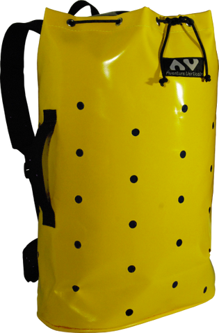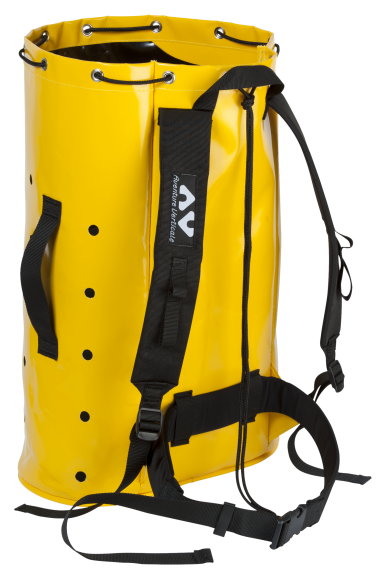Bag for canyoning made of varnished PVC 1100 dTex, 900 g/m² canvas.